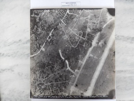 さらに次の写真は1944年10月10日に撮られた読谷飛行場の写真です。煙が上がっているのが見えます。
