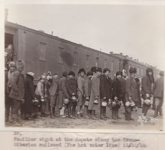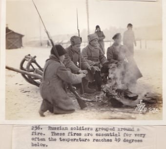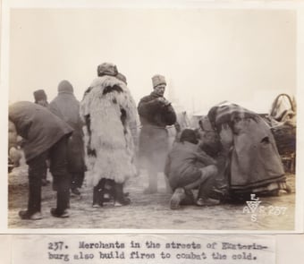 シベリアは極寒地域であるために、兵士も一般の人々もその寒さをしのぐために大変な努力をしなければならなかったのではないかと思われます。下記の写真は、華氏でマイナス49度(摂氏マイナス45度)という気候の中で、任務遂行に励む兵士や日常の生活をする人々の様子が伺われます。