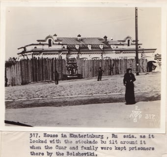 Left: Photograph No. 317. “House in Ekaterinburg, Russia. As it looked with the stockade built around it when the Czar and family were kept prisoners there by the Bolshevik” Right: Photograph No. 216. “Headquarters of the Czech-Slovak staff at Ekaterinburg, Russia. It was in this building that the Czar and family were held prisoners by the Bolshevik and where they were supposed to have met there death.” Record Group 395: Records of US Army Overseas Operations and Commands, 1898-1942, Entry SE, Box 1, American Expeditionary Forces in Siberia, National Archives at College Park, MD.