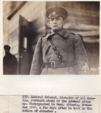Left: Photograph No. 253. “Admiral Kolchak, Director of All Russians, portrait study of the Admiral close up. Photographed in Omsk, Siberia, November 1918, a few days after he took up the duties of Director.” Right: Photograph No.437. “The new Russian Army is made of thousands of boys, many of them were twelve years old.” Record Group 395: Records of US Army Overseas Operations and Commands, 1898-1942, Entry SE, Box 1, American Expeditionary Forces in Siberia, National Archives at College Park, MD