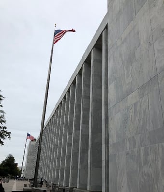 米国議会図書館はトーマス・ジェファーソン館、ジェームス・マディソン館、ジョン・アダムス館の3つの建物で構成されています。こちらはその一つジェームス・マディソン記念館の入口です。