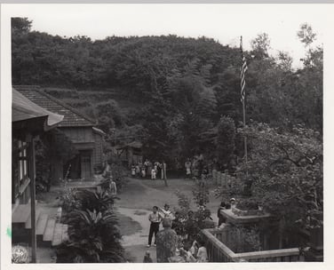 Photograph No. 111-SC 288801; First American Consulate in Japan: Spectators at the Black Ship Festival Celebrating Commodore Perry’s Landing in Japan in 1854, visit the building in Shimoda, Japan, which housed the first Amerivan Consulate in Japan. July 7, 1947. Records of the Office of the Chief Signal Officer, Record Group 111-SC; National Archives at College Park, MD.