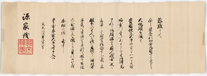 下記は、第14代将軍の徳川家茂が米国大統領に宛てた親書です。日本滞在中のハリスの業績に対して感謝の意を表しています。