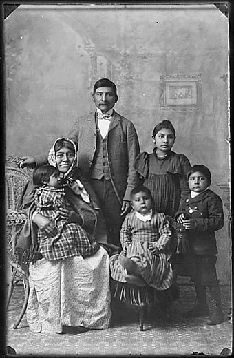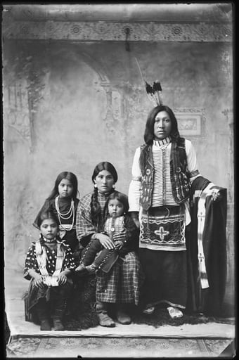 Right: Lamar Pokibro and Family, Bannock. 1897. No. 75-SEI-63. RG 75, Records of the Bureau of Indian Affairs1793 – 1999, Portraits of Indians from Southeastern Idaho Reservations, 1897 – 1897. NAID: 519254.