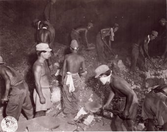 Right: Jap POWS at work in Malinta Tunnel. The prisoners have been put to work cleaning out the tunnels which were blasted by the Japs just before American forces recaptured Corregidor P.I. 11/6/1945. Photo No. 392660. Box 836. RG111SC Records of Signal Corps, National Archives in College Park, MD.