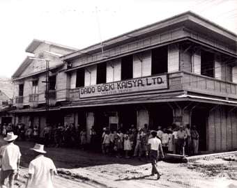 Left: Exterior view of officer’s sales store in Tacloban, Leyte Island, P.I. 12/23/1944. No. 292152. Box 578. RG111SC Records of Signal Corps, National Archives in College Park, MD.