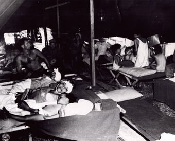 Left: Interior surgery tent, 165th Station Hospital, Dulag, Leyte Island, P.I. 10/26/1944. No. 260670. Box 285. RG111SC Records of Signal Corps, National Archives in College Park, MD.