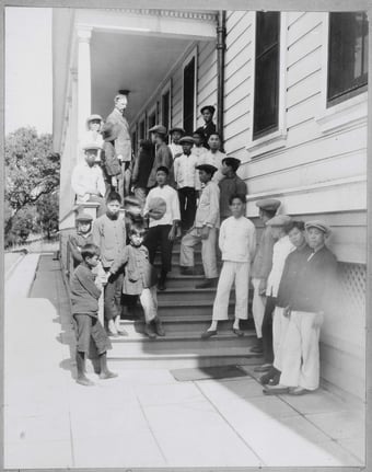Photograph of Immigrants Arriving at the Immigration Station on Angel Island. September 1931. No. 90-G-152-2038. Records of the Public Health Service, Prints and Negatives: Historical Photograph File, 1880-1943, Box 34. NAID: 595673. National Archives, College Park, MD. https://catalog.archives.gov/id/595673