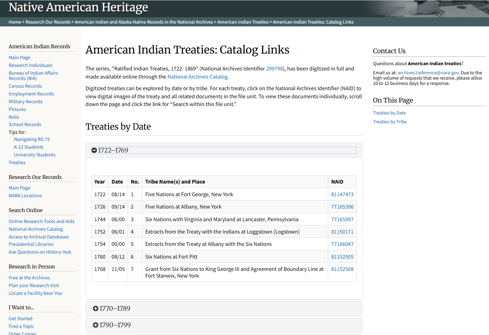 これらの条約のいくつかは、この下の画像にあるように、この国立アメリカ・インディアン博物館のサイト上でも見ることができます。